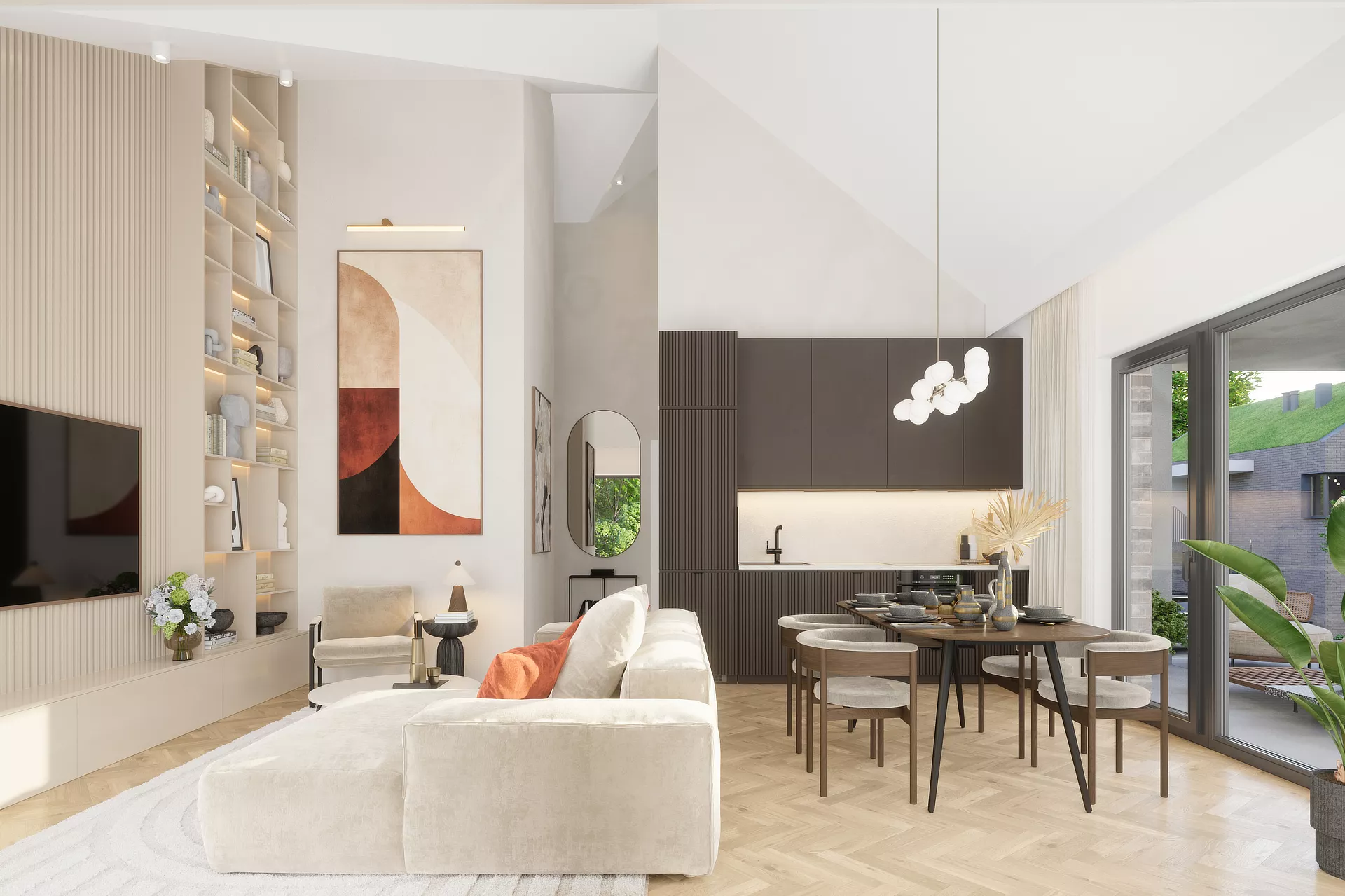 W naszych projektach skupiamy się na tworzeniu przestronnych i otwartych wnętrz. Najważniejszą zaletą wysokiego salonu jest optyczne powiększenie przestrzeni oraz wpuszczenie do środka znacznie większej ilości naturalnego światła. Salony o podwyższonym suficie są idealne dla osób, które cenią sobie poczucie oddechu i rozmachu w swoim mieszkaniu.