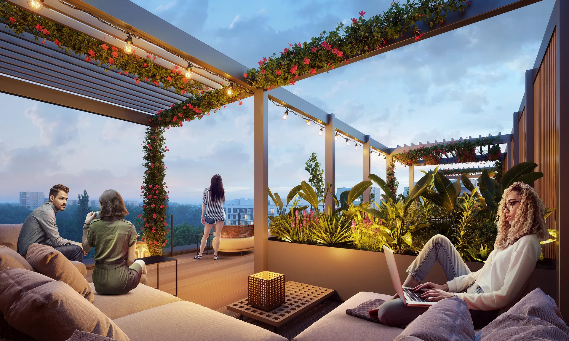 Wychodzimy naprzeciw potrzebom mieszkańców, którzy pragną kontaktu z naturą, nawet w sercu miasta. Dlatego w naszych inwestycjach projektujemy zielone tarasy na dachach, które stanowią unikalną przestrzeń rekreacyjną. Są to miejsca, gdzie możesz odpocząć w otoczeniu zieleni, podziwiając panoramę miasta.